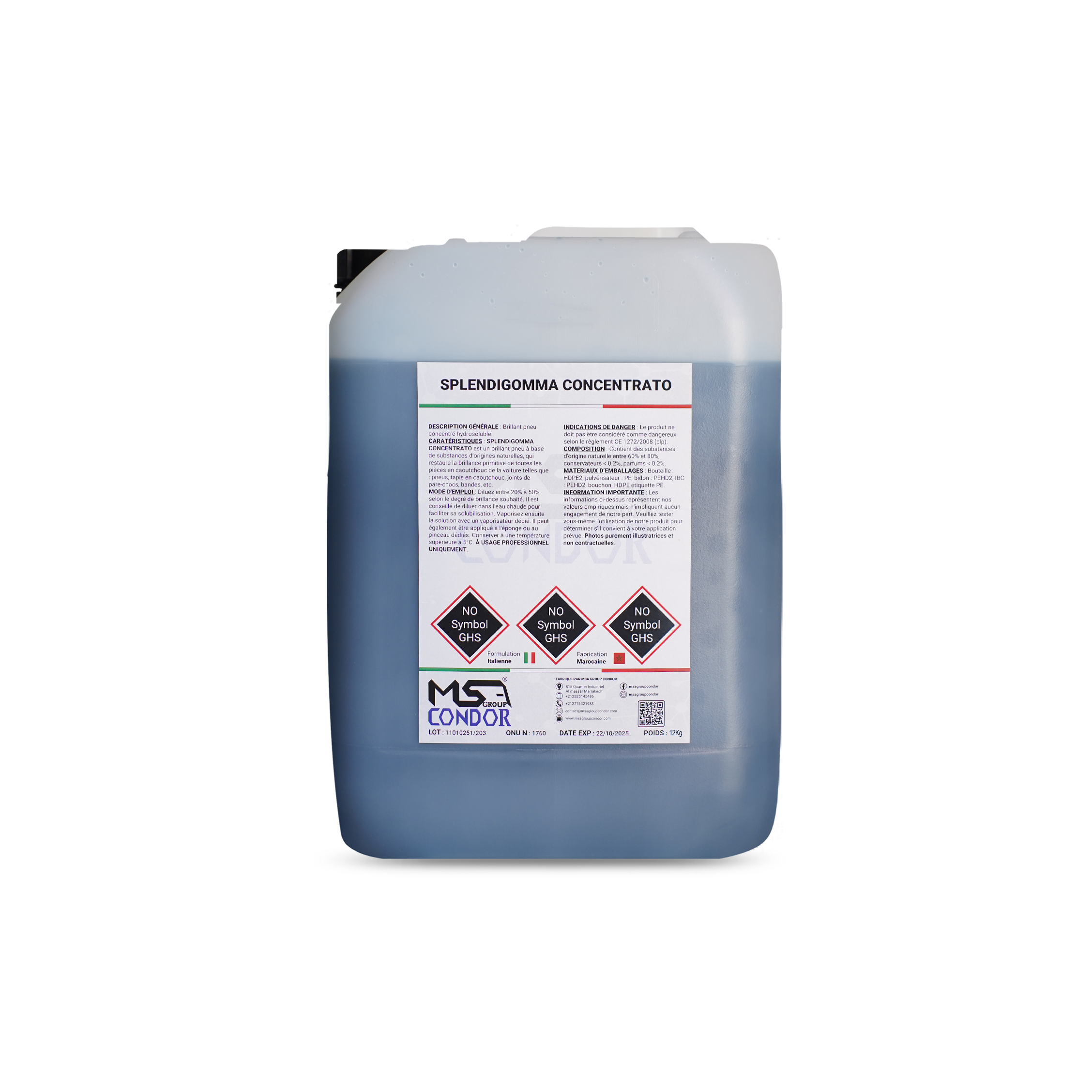 CARATÉRISTIQUES : SPLENDIGOMMA CONCENTRATO est un brillant pneu à base de substances d’origines naturelles, qui restaure la brillance primitive de toutes les pièces en caoutchouc de la voiture telles que : pneus, tapis en caoutchouc, joints de pare-chocs, bandes, etc.